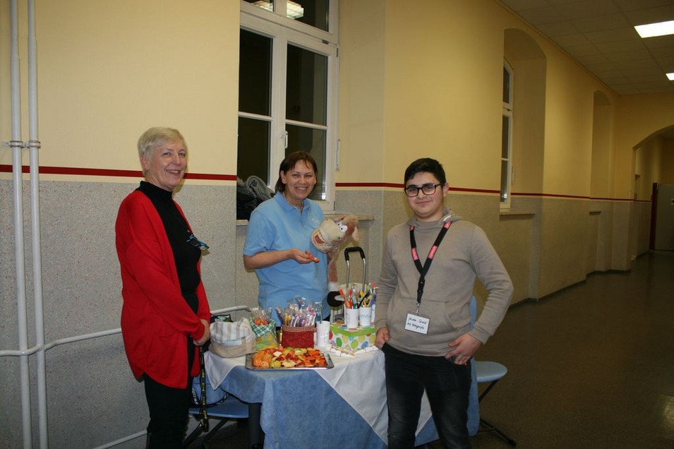 Bei den vielfältigen Präsentationen, an denen sich auch unsere Außenpartner, wie die Stadtbibliothek, die FEP, die Aktion Zivilcourage, unsere Schulzahnärztin und die ASG beteiligten, kamen die Besucher in unmittelbaren Kontakt mit unserem Schulleben. Am Schülertreff konnte man einen Einblick in die Angebote unserer Schulsozialarbeit und des Ganztagsangebotes Klettern gewinnen.