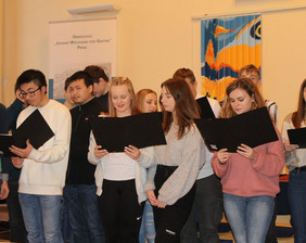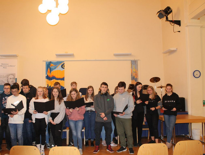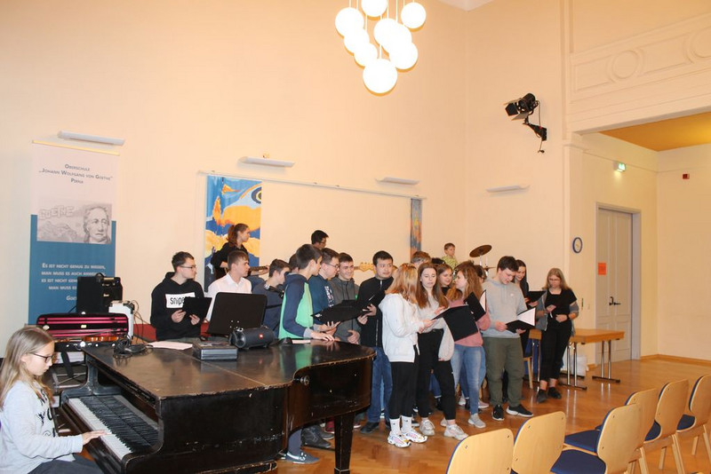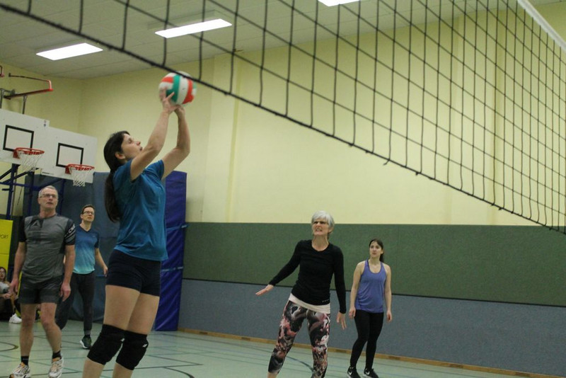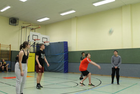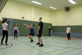 Aber auch alte Hasen unter den Schülern waren aktiv an der Gestaltung des Tages dabei. So standen Schüler der neunten Klasse im Informatikzimmer Rede und Antwort, sangen und spielten Schüler der "Zehnten" in der Aula und standen kurz darauf auch beim traditionellen Volleyball-Turnier auf dem Platz. Schüler der Volleyball-AG traten gegen Ehemalige und die aktiven Lehrer an, welche in diesem Jahr einen Nasenspitze vorne lagen.