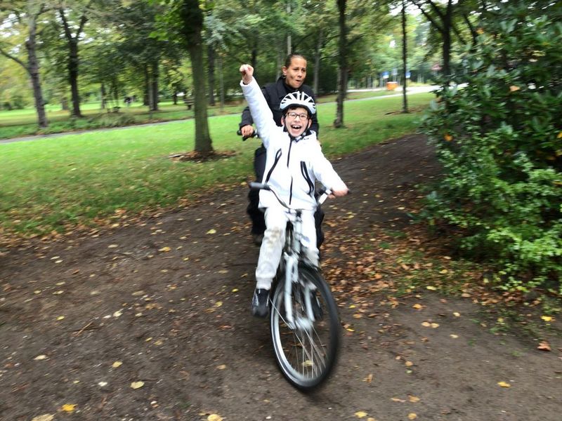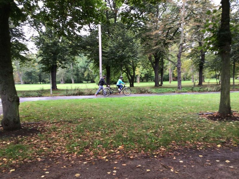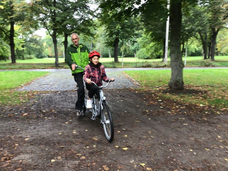 Alle Schüler (und auch Pädagogen) unserer Klasse M 2 probierten verschiedene Tandems in unterschiedlichen "Besetzungen" aus und hatten große Freude kleine und größere Runden durch den Park zu drehen. Jeder saß mal vorne, mal hinten, strampelte mal mit und mal nicht oder ließ sich auch einfach 'mal im Lastenrad eine Runde durch den Park radeln.