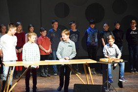 Seit einigen Jahren wird dieses Projekt von KlangNetz Dresden e.V. organisiert, um Schülern eine aktive Annäherung an zeitgenössische Musik zu ermöglichen und diese in Zusammenarbeit mit Künstlern als lebendige Ausdrucksform zu erleben. Zum ersten Mal hat unsere Schule zusammen mit 2 anderen Dresdner Schulen an diesem Projekt teilgenommen. Nach 3 Monaten intensiver Arbeit mit dem Komponisten Alexander Morawitz haben die Schüler der Klasse 5/1 während des Musikunterrichtes ganz unvoreingenommen „komponiert“. Und entstanden ist eine Folge rhythmisch-perkussiver Miniaturen, die sie dann im schönen Konzertsaal der Hochschule für Musik aufführen durften. Lampenfieber, … Staunen auch über die Ergebnisse der Projekte der Schillerschule Dresden-Loschwitz und des Gymnasiums Dreikönigsschule Dresden und …. dankbarer Applaus des Publikums waren ein schöner Abschluss des Projektes. Schülerreaktionen: „Es hat mir sehr viel Spaß gemacht mit anderen Schülern ein eigenes Musikstück                                      auszudenken.“ „Manchmal war die Arbeit in unserer Gruppe chaotisch und sehr laut, aber am Ende haben wir uns doch geeinigt und ich habe viel dazugelernt.“ „Wir durften viele Instrumente, auch die Lotosflöten ausprobieren und in der Aula unserer Schule arbeiten.“ „Wir haben gestaunt, dass man sich Musik auch mit Telefonnummern und Handzeichen aufschreiben kann.“ „Es war richtig toll, als wir auf der großen Bühne unser Stück dem Publikum vorgespielt haben.“ „Unser Konzert war toll und wir haben uns trotz der Aufregung nur mini verspielt.“ „Es hat alles Spaß gemacht, auch die Stücke der anderen Schulen und wir waren sehr aufmerksam.“
