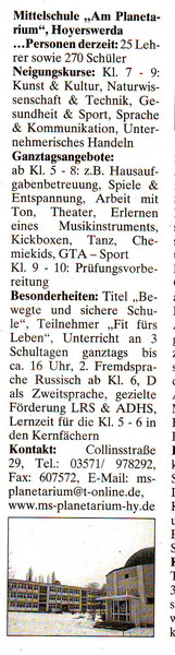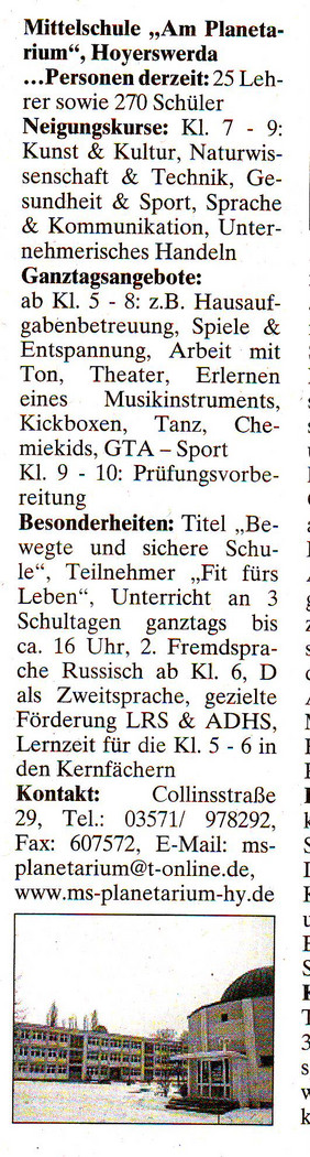 Unter der Rubrik "Schulen im Überblick" erschien auch unsere Schule mit ihren aktuellen Daten.