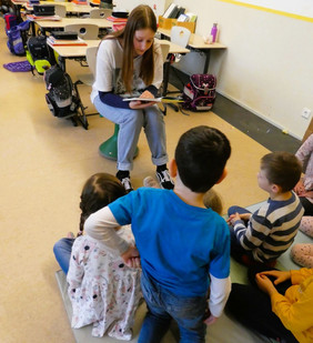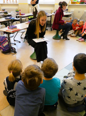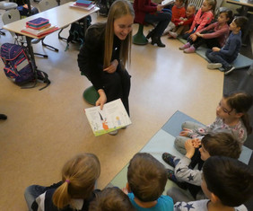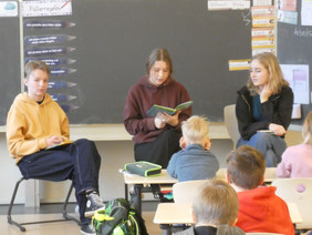 Das Lampenfieber der großen Schüler und Schülerinnen legte sich schnell, denn die Kleinen waren begeisterte Zuhörer und freuen sich schon auf ein Wiedersehen im kommenden Schuljahr am deutschlandweiten Vorlesetag am 17.11.2023.