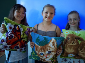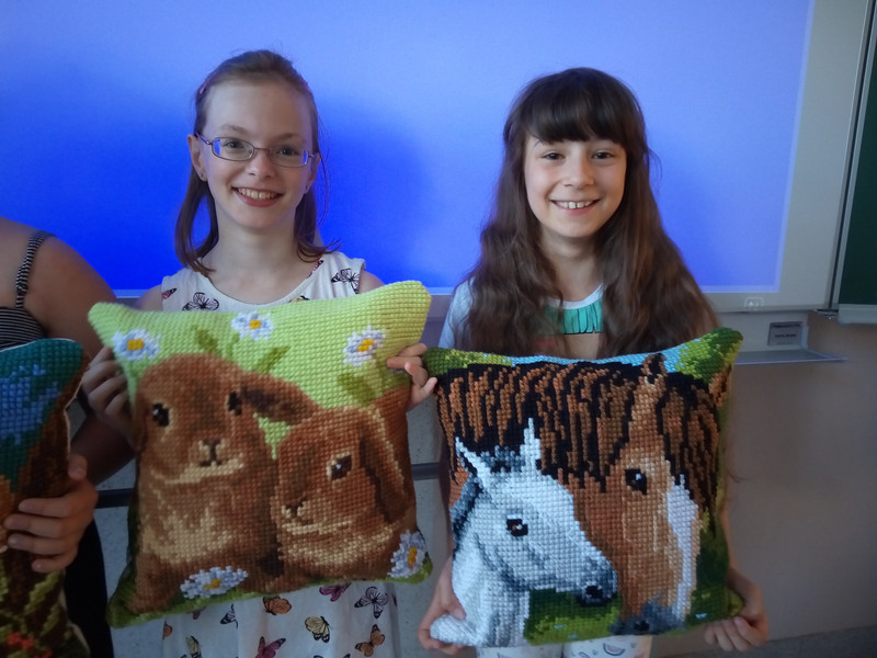 So ging es den Mädchen des GTA Angebotes „Strickliesel“. Ein ganzes Jahr haben sie an diesen Kissen mit viel Fleiß und Durchhaltevermögen gearbeitet und konnten nun ihre fertigen Ergebnisse bewundern und ganz stolz mit nach Hause nehmen. Eine tolle Leistung, die mit sehr hübschen Kissen belohnt wurde.