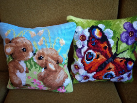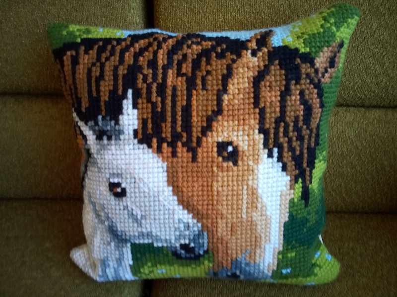 hält schließlich sein eigenes, wunderschönes und vor allem selbstgemachtes Kissen in den Händen.
