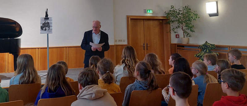 Am 6.2. war Andreas Rockstroh aus Jöhstadt zu Gast bei uns und erzählte den Viertklässlern aus dem Leben von Theodor Kirchner, dem Namensgeber unserer Schule. Er wuchs als kleiner Junge hier in Wittgensdorf auf und hat später viele Musikstücke komponiert. Herr Rockstroh spielte uns einige davon auf dem Flügel vor.