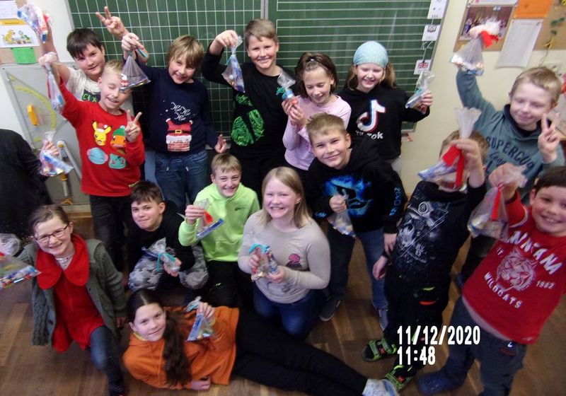 Der Ortschaftsrat hat jeder Klasse eine Weihnachtstüte mit liebevoll gepackten Päckchen geschenkt, da der Weihnachtsmarkt dieses Jahr nicht stattfinden konnte.