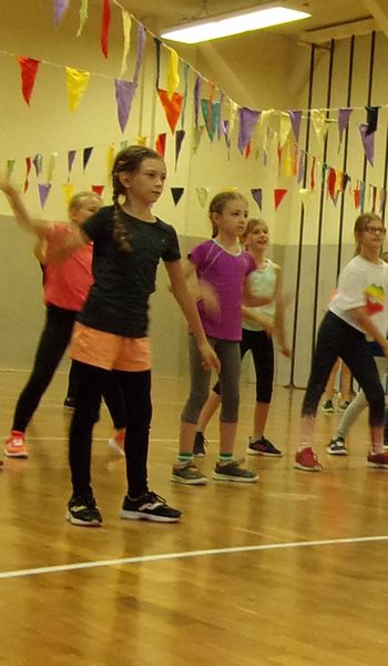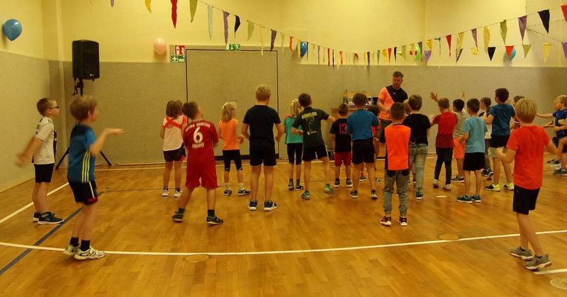 Jede Klassenstufe durfte an diesem Tag in der zur Partyhalle geschmückten Turnhalle eine Unterrichtsstunde mit Michael Hirschel eine Tanzchoreografie einstudieren.