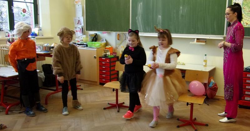 Unsere Faschingsparty stieg am Aschermittwoch. Die Kinder verkleideten sich als allerlei Märchenfiguren. Zur Einstimmung besuchte uns das Kinder-Musik-Theater Ellen Heimrath. Unsere SchülerInnen verfolgten gespannt das Programm „Das magische Buch“, tanzten und sangen fleißig mit und konnten alle Märchenrätsel lösen.