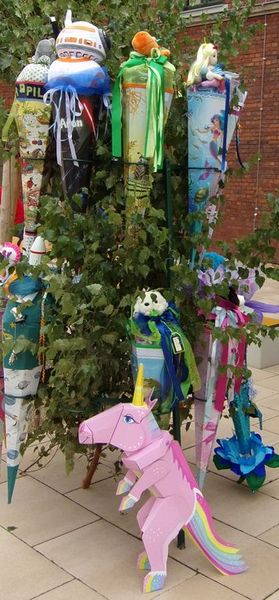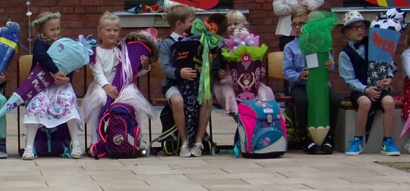 Jede Klasse wurde zeitlich versetzt von ihrer Klassenlehrerin in Empfang genommen. Anschließend lernten die Kinder ihr Klassenzimmer kennen, bevor sie in unserem Schulhof die liebevoll gepackten Zuckertüten überreicht bekamen.