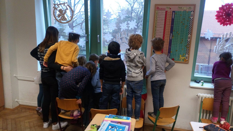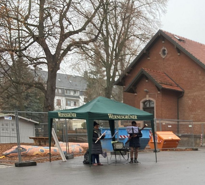 Musik gehört ebenso zum Advent wie Kerzenschein und Plätzchen. Der an unserer Schule integrierte CJD Hort „Luri“ holte daher im Rahmen der Aktion „Advent braucht Musik“ des Sächsischen Musikrates und seiner Partner am 10. Dezember die Musiker Yuri Matsuzaki und Shinji Komaki an die Ludwig-Richter-Grundschule. Eine halbe Stunde lang erklangen auf dem Schulhof von „Oh Tannenbaum“ bis „Hört der Engel helle Lieder“ adventliche Melodien mit Querflöte und Fagott und erfreuten Kinder und Erwachsene, die an den geöffneten Fenstern und im Freien lauschten.