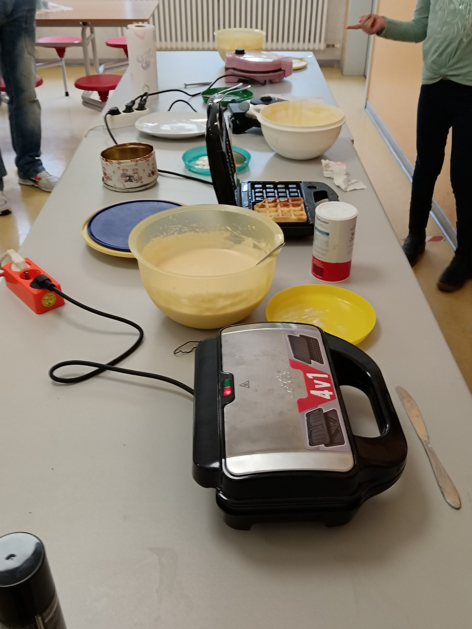 2023 Tag der offenen Tür am 24.10.2023 Am 24.10.2023 war es wieder soweit. Wir öffneten unsere Türen und freuten uns über viele Besucher. An verschiedenen Stationen gab es Informationen zur Arbeit und den Aktivitäten wie GTA und AG im Schul- und Hortbereich. Es konnte gerätselt, geforscht, gebastelt, gespielt, musiziert, experimentiert, Englisch gelernt und Basketball gespielt werden. Kinder der Klassen 4 führten interessierte Eltern durch die Räume und beantworteten Fragen zur Geschichte der Schule. Die Tanz-AG des CJD-Hortes begeisterte das Publikum in der Turnhalle. Jahreszeitgemäß entstanden kleine Kunstwerke mit Kartoffeldruck. Und wer noch mehr über Kunst erfahren wollte, war im Kunstraum genau richtig. Es gab leckeren Kuchen und die Klasse 3a hat mit ausreichend Waffeleisen dafür gesorgt, dass keiner lange warten musste. Und wer lieber etwas Herzhaftes essen wollte, für den war der Lángosstand auf dem Schulhof der richtige Anlaufpunkt. Dort war es, dank der Feuerschale, trotz Regen sehr gemütlich. Vielen Dank an alle fleißigen Helfer!!! Besonders an die fleißigen Kuchenbäcker-Mamas und Papas, die mit Ihren Spenden für eine riesige Auswahl an der Kuchentheke gesorgt haben.