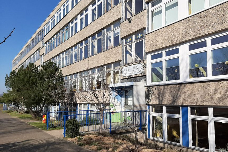 Der Standort unserer Grundschule an der Eigenheimsiedlung „ Zur Krone“ ist circa 10 Minuten vom Stadtzentrum entfernt und sehr ruhig. In dem großräumigen Gelände befinden sich neben der Turnhalle im Außenbereich ein Sportplatz, ein Spielplatz und ein Schulgarten, also ideale Bedingungen für unsere Kinder.