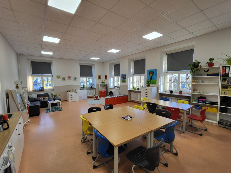 Zusätzlich zur Nutzung der Klassenräume als Gruppenräume, haben wir 1 Hortzimmer mit Lese-, Puppen- und Bastelbereich und 1 Hortzimmer als Bewegungsraum zur Verfügung.