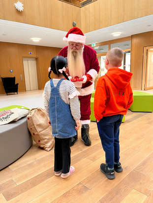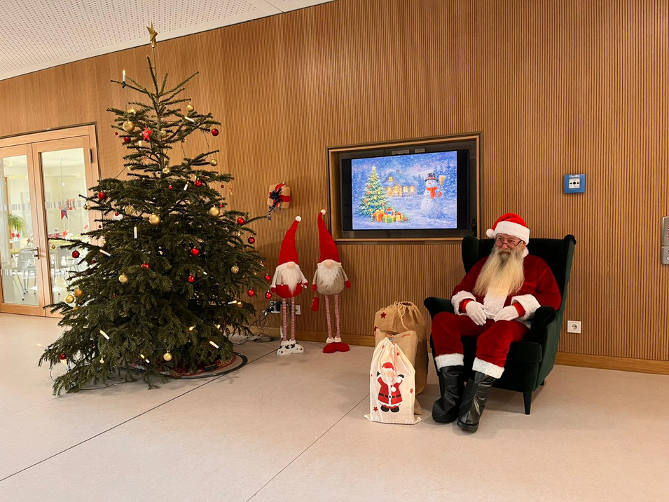 Ein besonderer Höhepunkt war der Besuch des Weihnachtsmannes – denn bei uns war tatsächlich der echte Weihnachtsmann zu Gast. Die Kinder sangen für ihn mit großer Begeisterung und hörten aufmerksam zu. Wir bedanken uns herzlich beim Weihnachtsmann, dass er sich die Zeit genommen hat, unsere Schule zu besuchen. Die Freude war groß, als sich die Klassen anschließend auch noch über ein Klassengeschenk freuen durften.