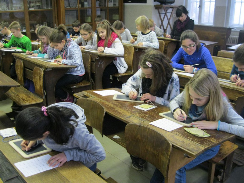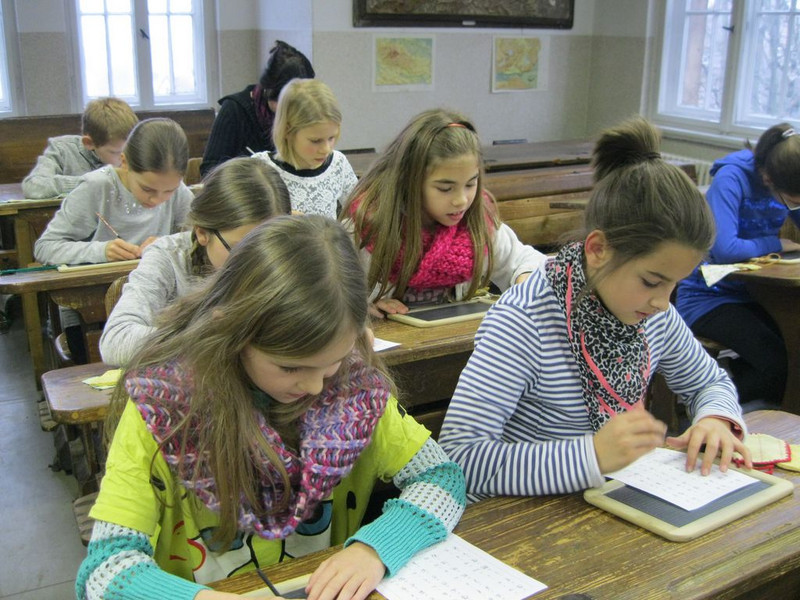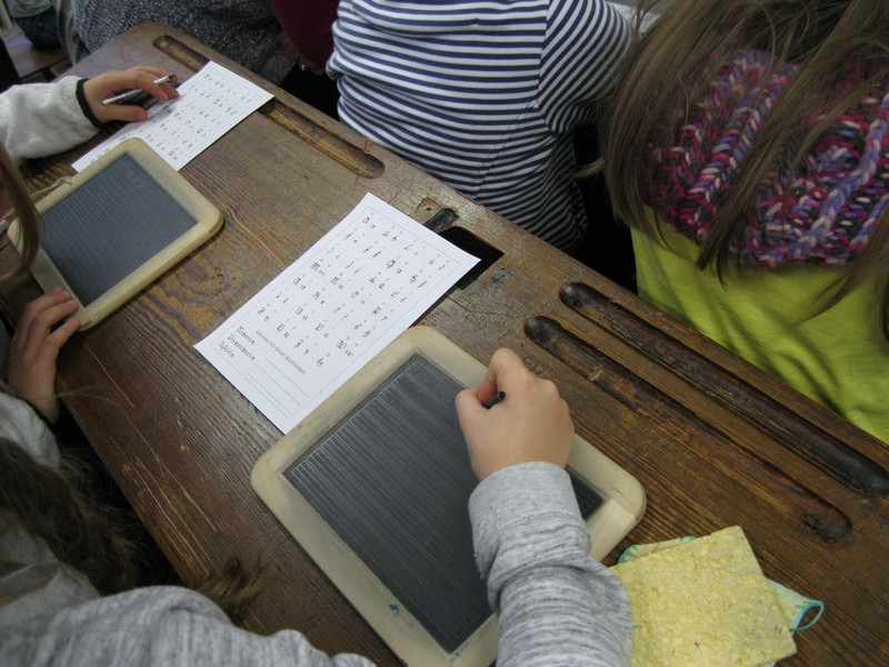Nachdem sie im Sachunterricht viel über das Lernen in früheren Zeiten erfahren haben, erhalten sie hier einen ganz praktischen Einblick.