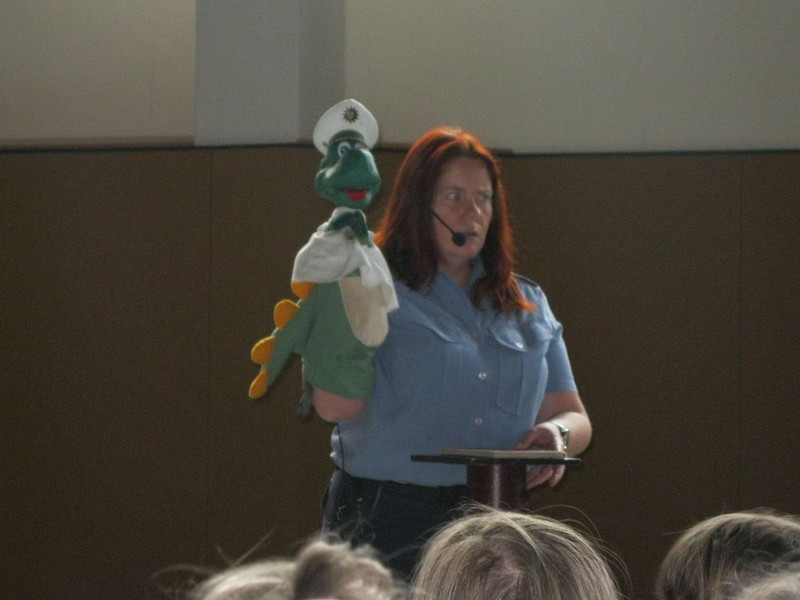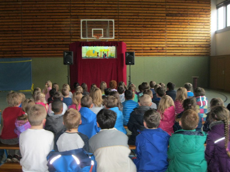 Die Polizei führte für unsere Klassen 1 ein Theaterstück vor, welches für die Kinder das Verständnis erwecken sollte, niemals mit einer fremden Person mitzugehen.