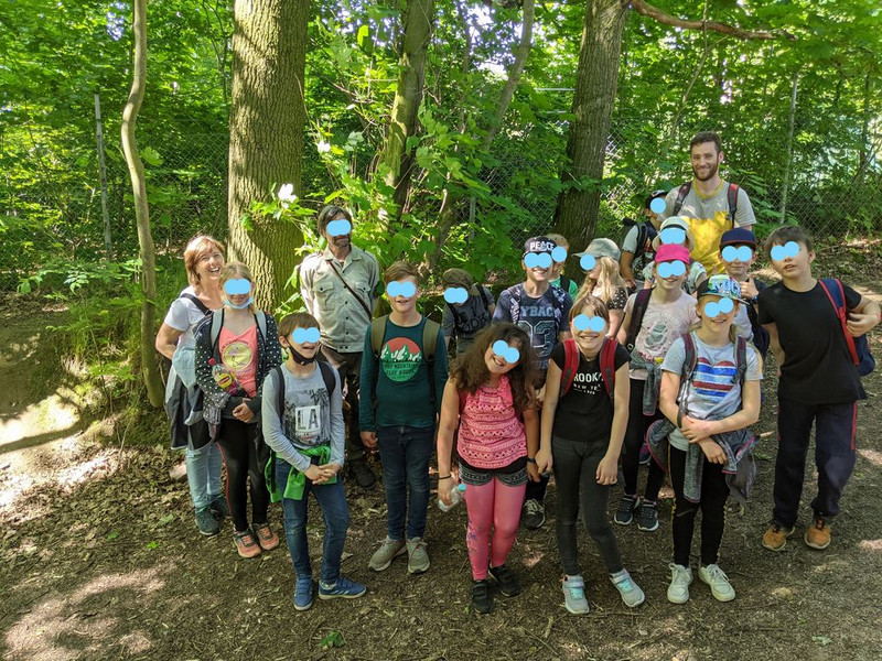 Der Tag startete mit einer Wanderung von der Schule zum ehemaligen Wildgehege. Dort wurden sie vom Förster mit seinen zwei Jagdhunden empfangen. Mit dem Förster ging es dann 1,5 Stunden durch den Wald mit vielen informativen Zwischenstopps.