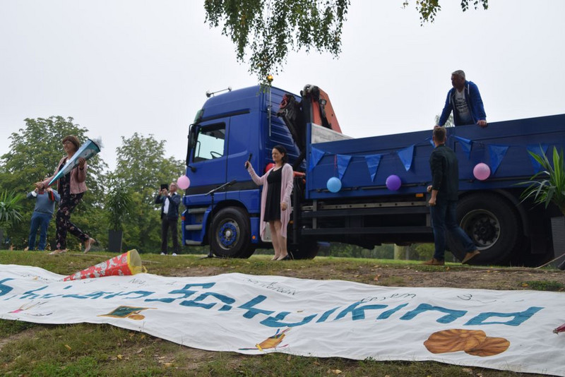 Im Anschluss hielt unsere Schulleiterin, Frau Katzer, eine Rede – für die Eltern und vor allem für die Schulanfängerinnen und Schulanfänger. Bis dann endlich die große Überraschung anrollte. Dank der Elternmitarbeit wurden die Zuckertüten von einem großen LKW gebracht, welcher über dem Sportplatz angefahren kam. Dies war für die Kinder ein Höhepunkt.