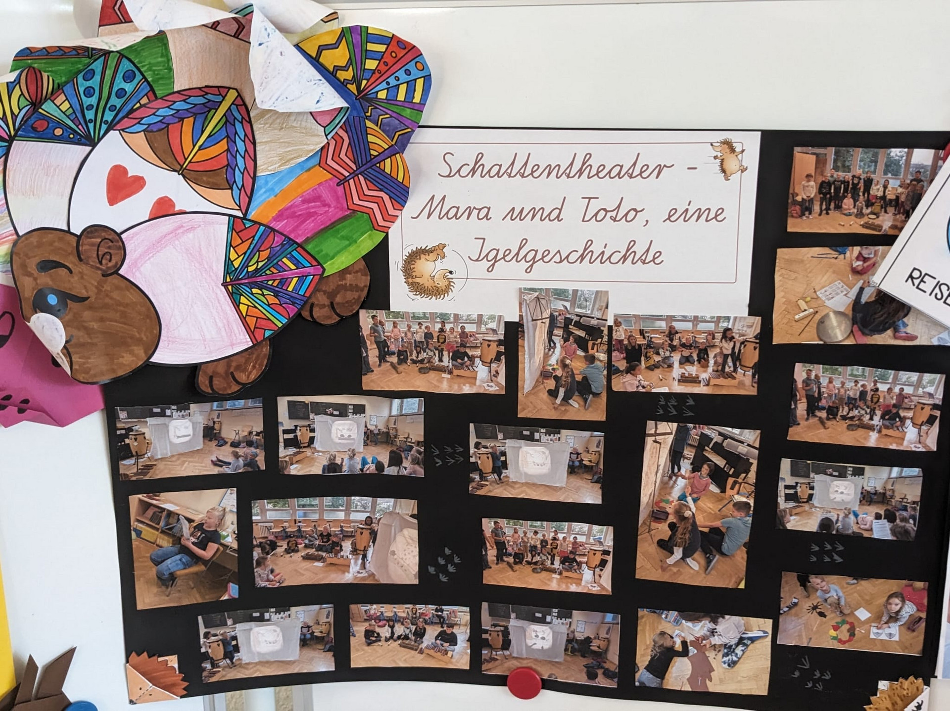 Die verschiedenen Stationen boten den Kindern eine Vielzahl von Möglichkeiten, sich auszutoben und ihre Talente zu entfalten. Vom Schminken über Sport und Spiel bis hin zu spannenden Escape Rooms war für jeden Geschmack etwas dabei. Insbesondere das Basteln von Masken und dei sing and dance Station erfreute sich großer Beliebtheit, während an der Malstation wunderschöne Kunstwerke entstanden. Besonders beeindruckend war die Zusammenarbeit der Schülerinnen und Schüler beim Gestalten des Wandplakats für die Schule. Gemeinsam erschufen sie ein buntes Kunstwerk, das nun die Wände unserer Schule schmückt und das Gemeinschaftsgefühl stärkt.