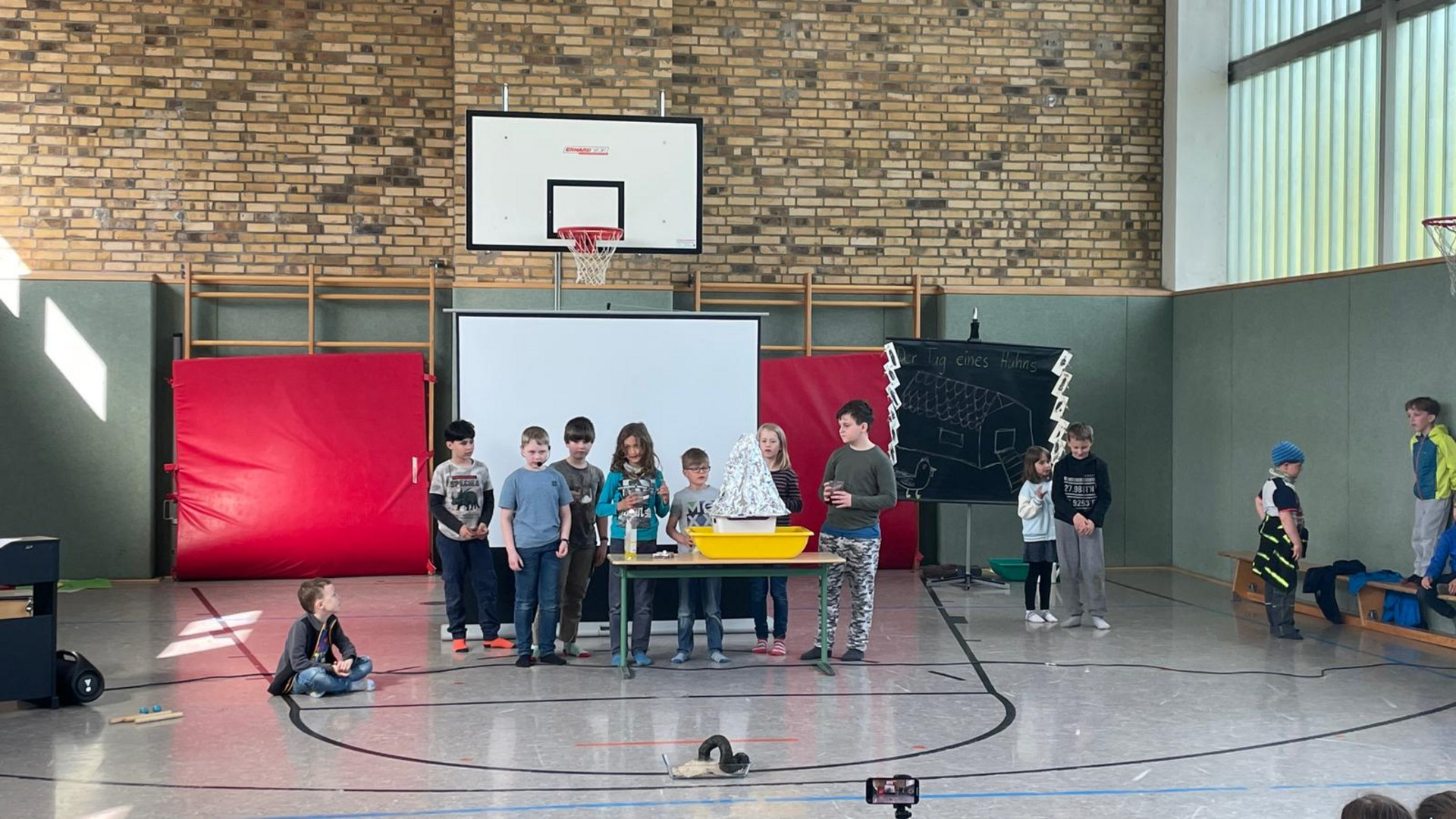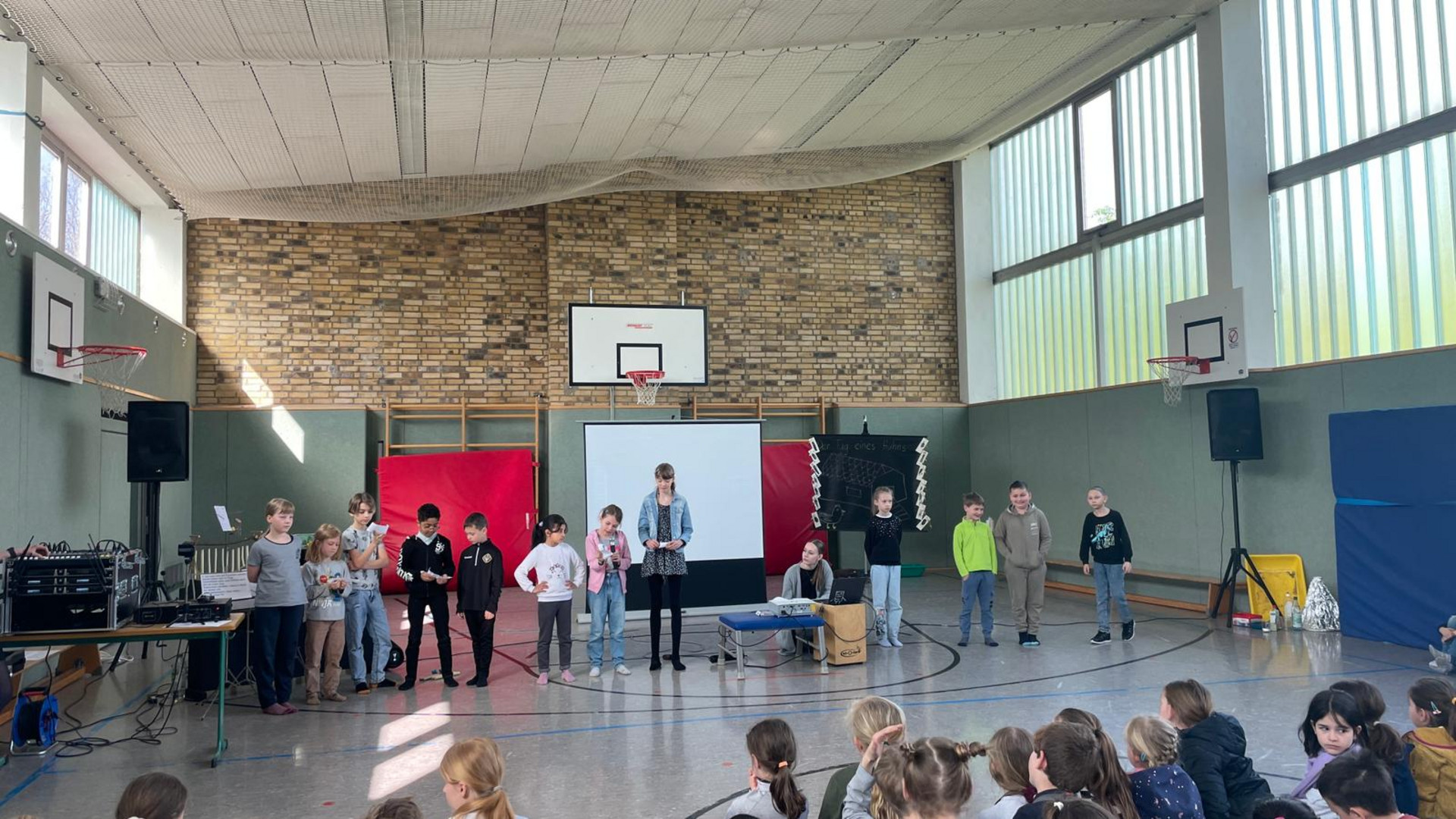 Von Montag bis Donnerstag arbeiteten die Kinder in ihren Gruppen an ihrem Projekt und am Freitag stellten sie ihre Ergebnisse den anderen Schülerinnen und Schüler in der Turnhalle vor.