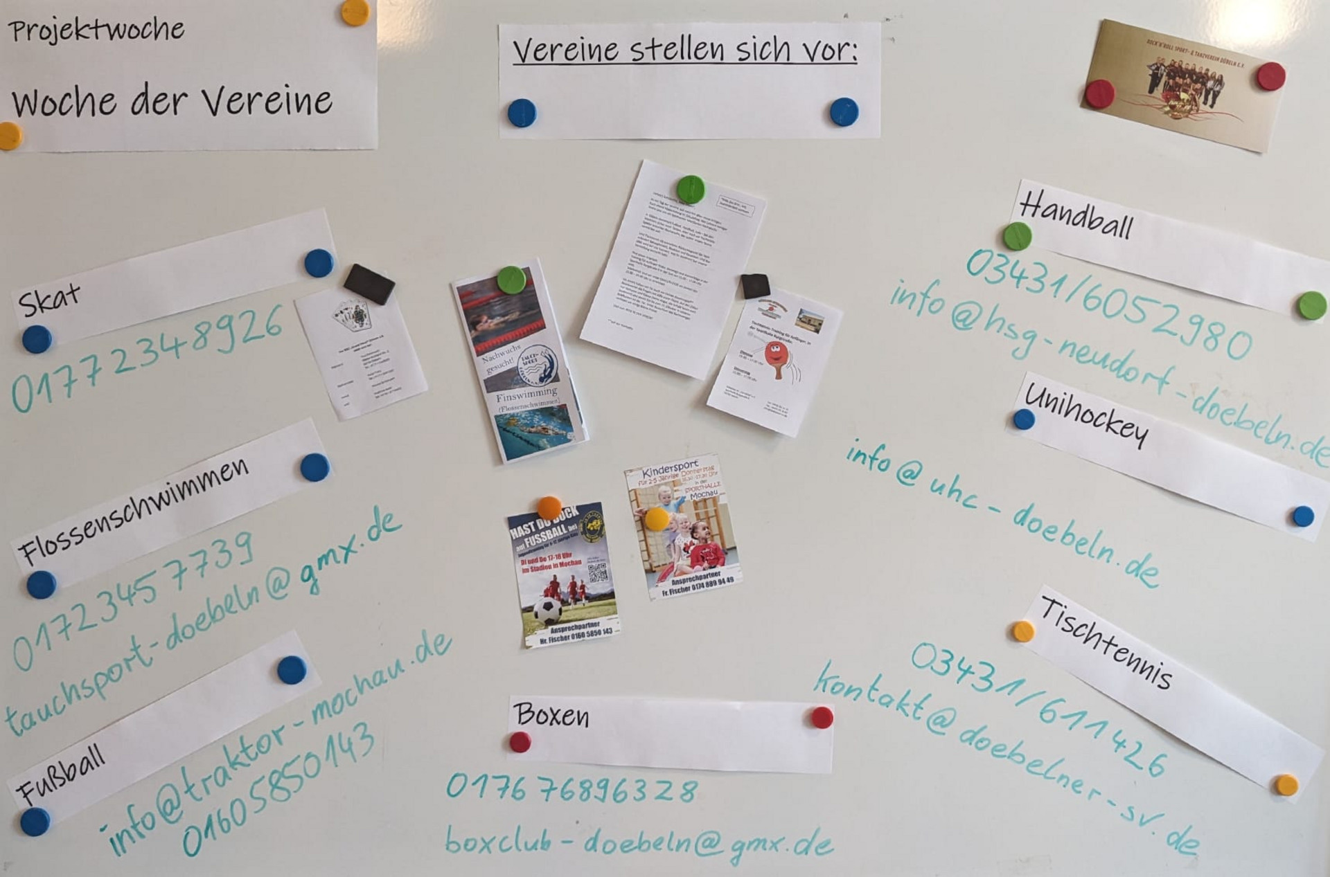Vom 30. September bis zum 2. Oktober 2024 fand an unserer Grundschule Döbeln-Ost eine spannende Woche der Vereine statt. In dieser besonderen Veranstaltung hatten die Kinder die Gelegenheit, zahlreiche regionale Vereine kennenzulernen und sich über verschiedene Sportarten zu informieren. Vertreten waren unter anderem Vereine für Handball, Boxen, Fußball, Skat, Flossenschwimmen, Tischtennis und Unihockey. Diese Vereine suchen stets nach engagiertem Nachwuchs und freuten sich darauf, interessierte Kinder für ihre Angebote zu begeistern.