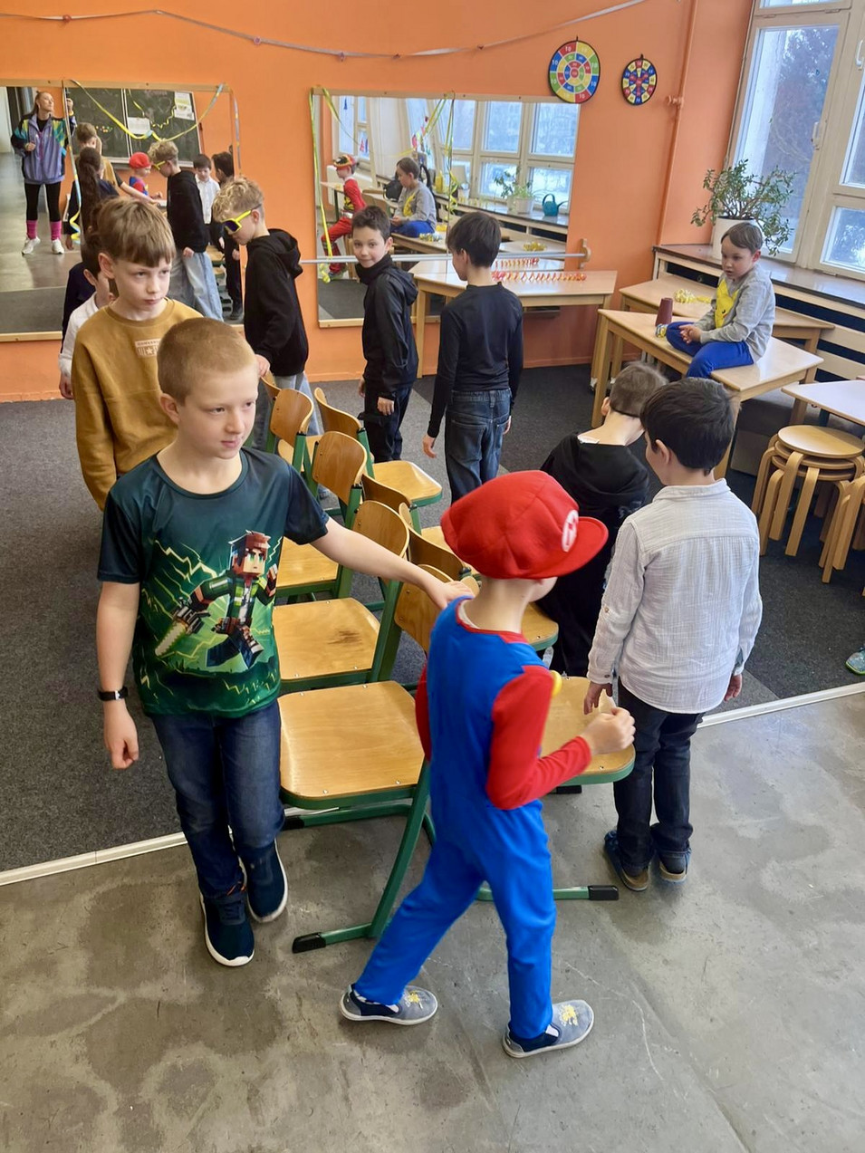 Im ganzen Gebäude und in der Turnhalle warteten verschiedene Stationen auf die Kinder: Maskenbasteln, Kinderschminken, Karaoke, Tanzen und lustige Partyspiele. Jedes Kind durfte sich drei Angebote aussuchen und diese nacheinander besuchen – für Abwechslung und gute Stimmung war also gesorgt.