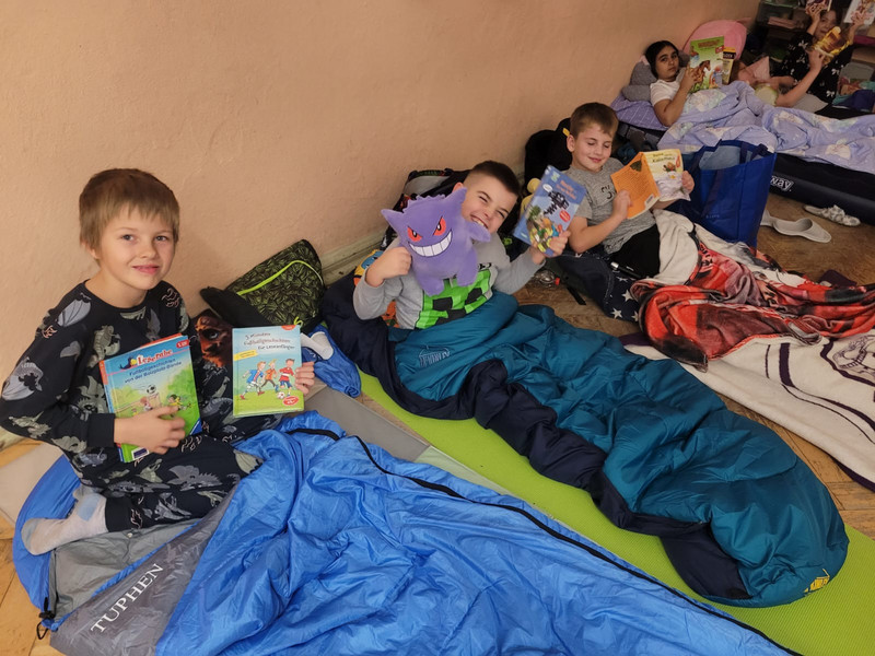 Nachdem wir uns wieder beruhigt hatten, kuschelte sich jeder in seinen Schlafsack und las in seinen mitgebrachten Büchern. Natürlich nur mit Taschenlampe – bis zum Einschlafen. Gute Nacht.