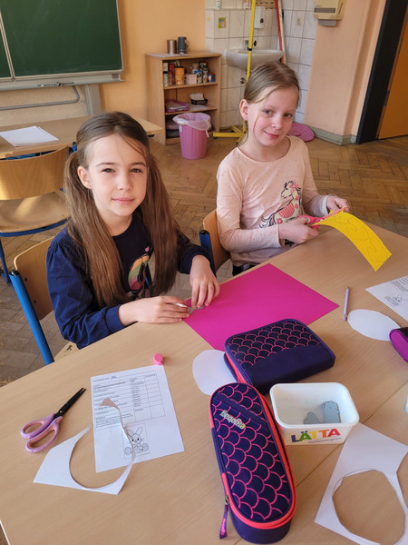 Auch in diesem Jahr gab es zu unserem Osterprojekttag viel zu erleben. So hoppelte ein großer, flauschiger Hase schon zu Schulbeginn von Klassenzimmer zu Klassenzimmer und verteilte kleine Ostergrüße. Anschließend warteten die unterschiedlichsten Stationen auf die Kinder. So konnten zum Beispiel hübsche Anhänger aus Holz oder Papier für den Osterstrauß, niedliche Osterhasen mit Ostergras, gefaltete Ostereulen und kunstvolle Osterkörbchen gebastelt werden. Sportliche Fitness, aber auch Geschicklichkeit, waren bei der Osterrennbahn gefragt und auch eine besonders leckere Station gab es in der Schulküche zu entdecken. Hier wurden gebackene Ostereier verziert und dann natürlich auch gleich probiert. Lecker! Als anschließend auch noch der echte Osterhase über den Schulhof hoppelte und für jedes Kind ein kleines Osternest versteckte, war die Freude groß. Rundum war es wieder ein toller und erlebnisreicher Tag und eine schöne Einstimmung auf das Osterfest.