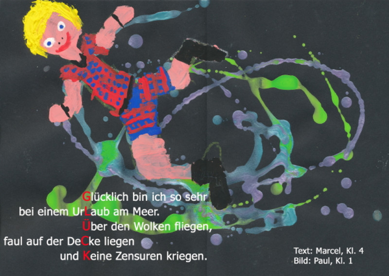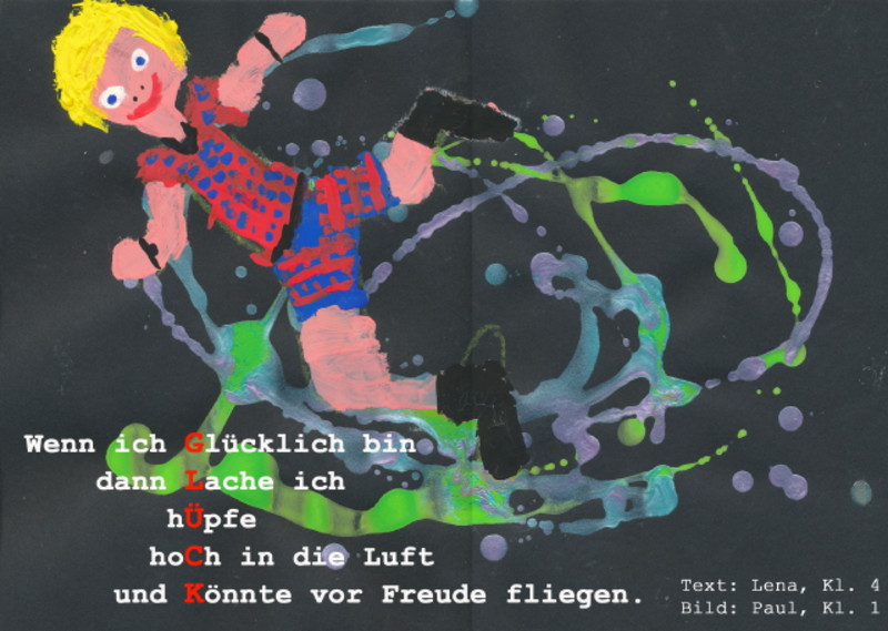 Frau Poike hat die Idee der Akrostichons aufgegriffen und mit den afrikanischen Kindern ebenfalls gedichtet. Diese hatten mehr zu tun - das Wort "happiness" hat ja mehr Buchstaben!