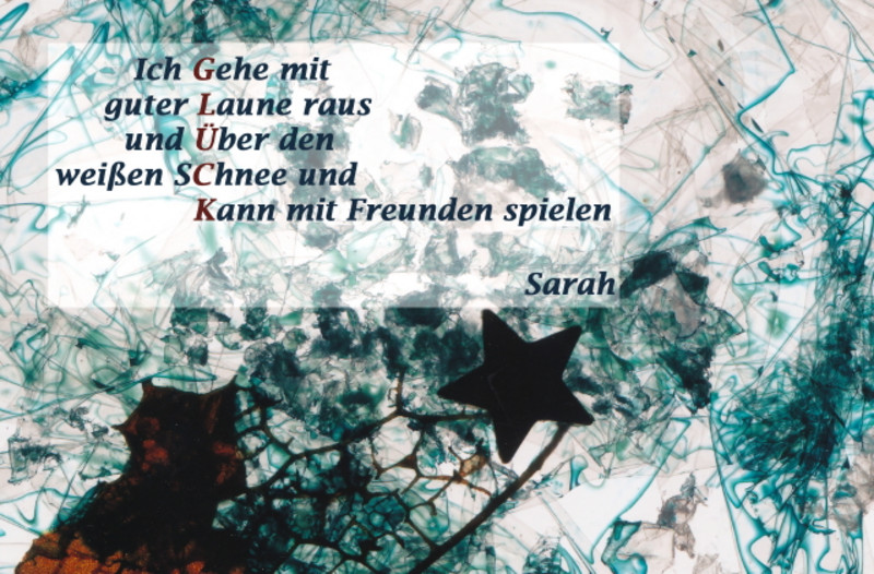 Die Karten gestaltete Frau Loose und verkaufte sie in der Festwoche zum Preis von 1 Euro zum Tag der offenen Tür in der Schule.