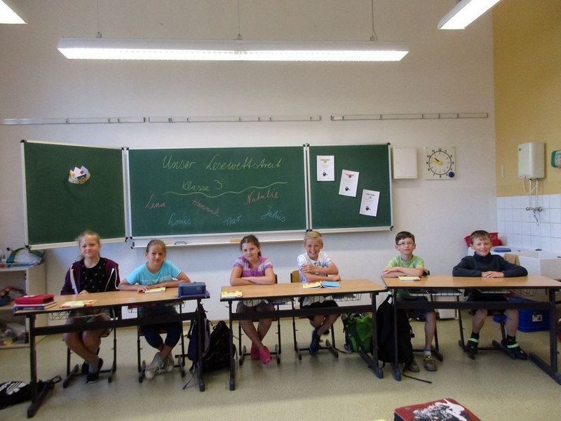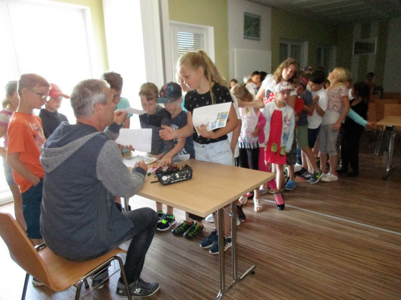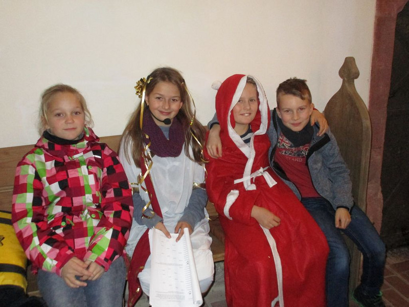 Mit sehr viel Fleiß wurde unter der Anleitung von Frau Lochen und Frau Frauendorf mit der Arbeitsgemeinschaft „ Schulprogramm“ fast ein halbes Jahr geübt. Dementsprechend war die Aufgeregtheit zu spüren. Doch der Applaus am Ende der Aufführung zeigte, es hat allen außerordentlich gefallen. Rudi Thoma spielte sogar auf seinem Saxophon und Mathilda Swaton auf Ihrer Flöte.