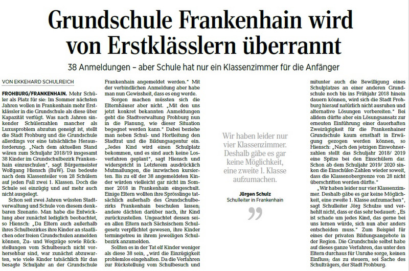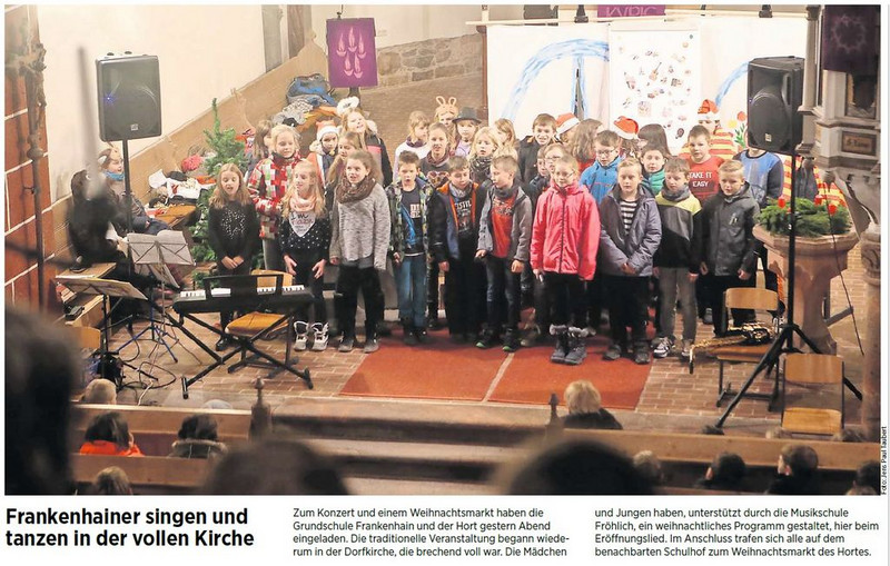 Zu dem alljährlichen Weihnachtskonzert lud auch im Dezember 2017 die Grundschule Frankenhain alle Eltern, Großeltern und Schulliebhaber in die St. Mauritius-Kirche Frankenhain ein.