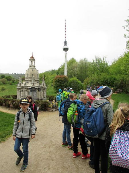 Wir hatten Projekttage zum Thema "Sonne, Mond und Sterne". Zuerst sahen wir uns Sehenswürdigkeiten aus aller Welt an. Vom Völkerschlachtdenkmal, der Semperoper, der Frauenkirche und der Wartburg ging es vorbei am Eiifelturm zu den Pyramiden und der Chinesischen Mauer. Diese Bauwerke wurden im Maßstab 1:25 nachgebaut. Nach unserem Rundgang ging es in die 360°-Filmkuppel. Hier sahen wir einen Film über das Weltall. An der Kuppel war der nächtliche Sternenhimmel, Sonnenauf- und -untergang zu sehen. Wir erhielten einen kleinen Einblick über die Größe des Sonnensystems.