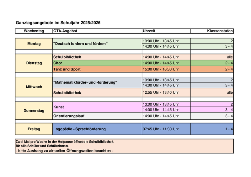 Unsere Ganztagsangebote im Schuljahr 2025/26