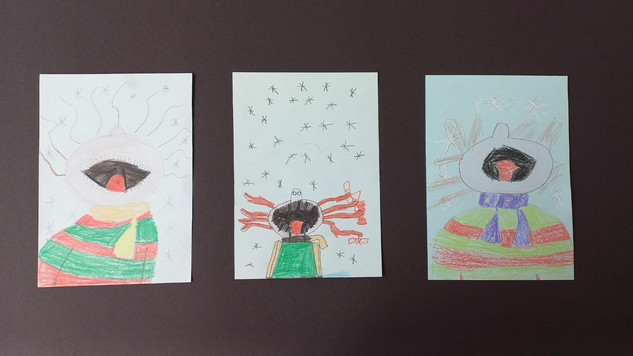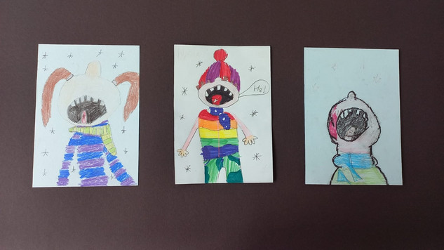 Die künstlerischen Arbeiten sind im Rahmen des freizeitpädagogischen Angebotes "Kunterbuntes Malatelier" unter der Leitung von Frau Pasichnyk entstanden.