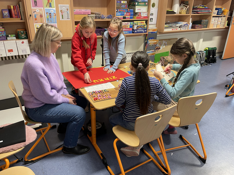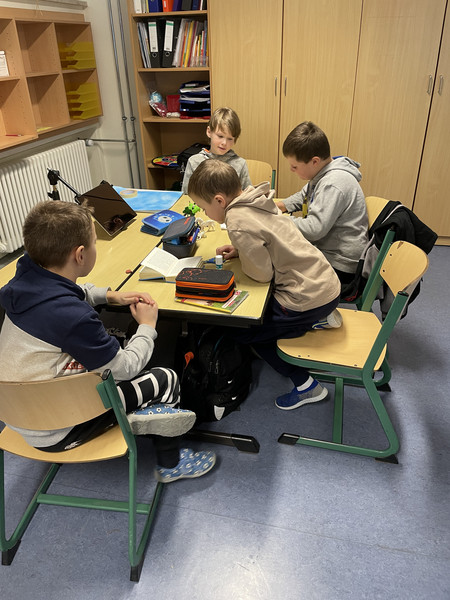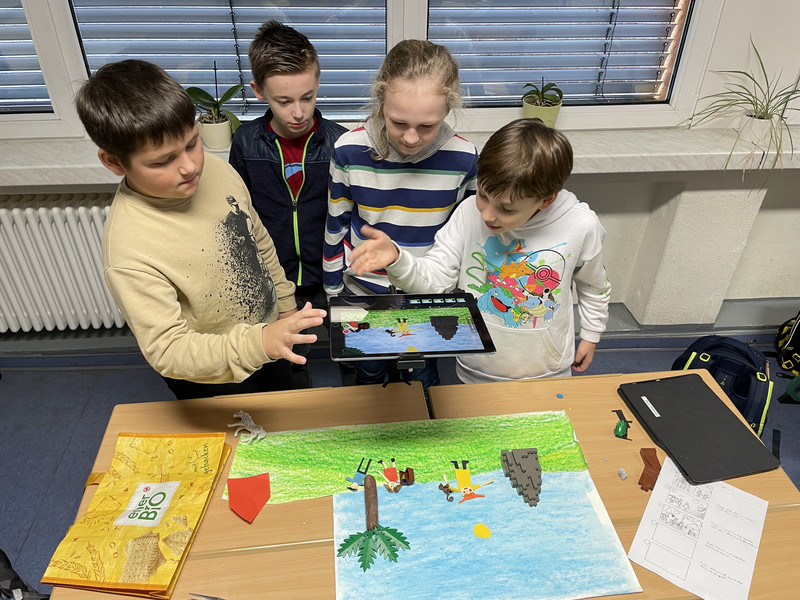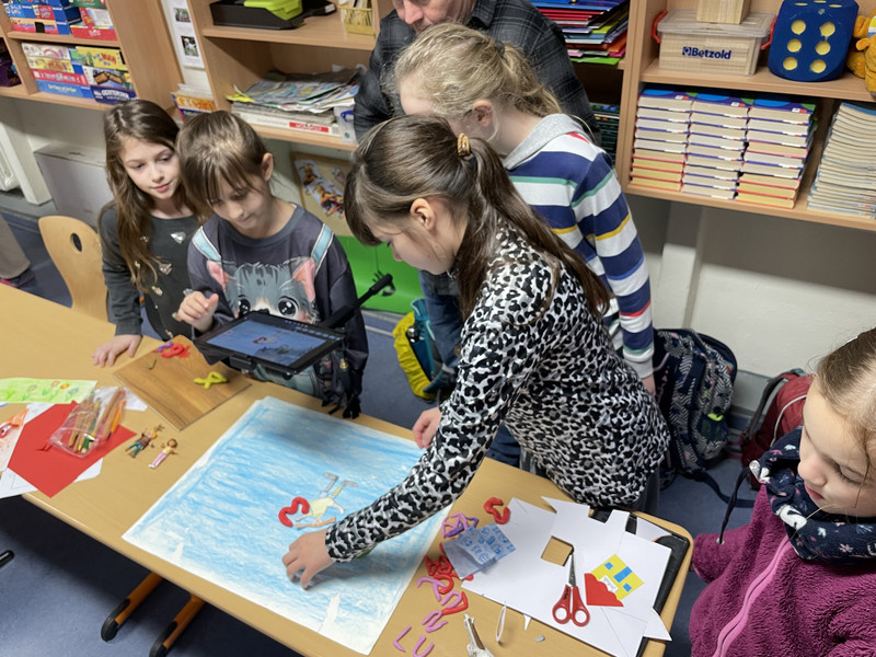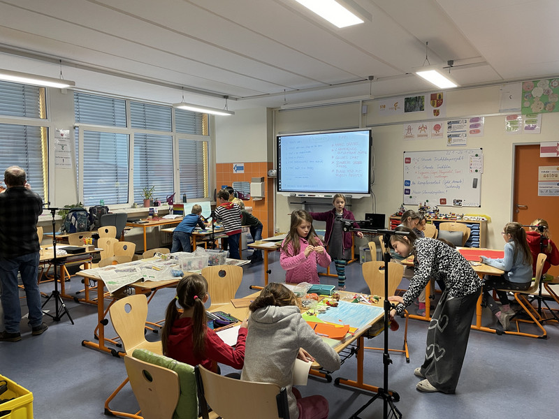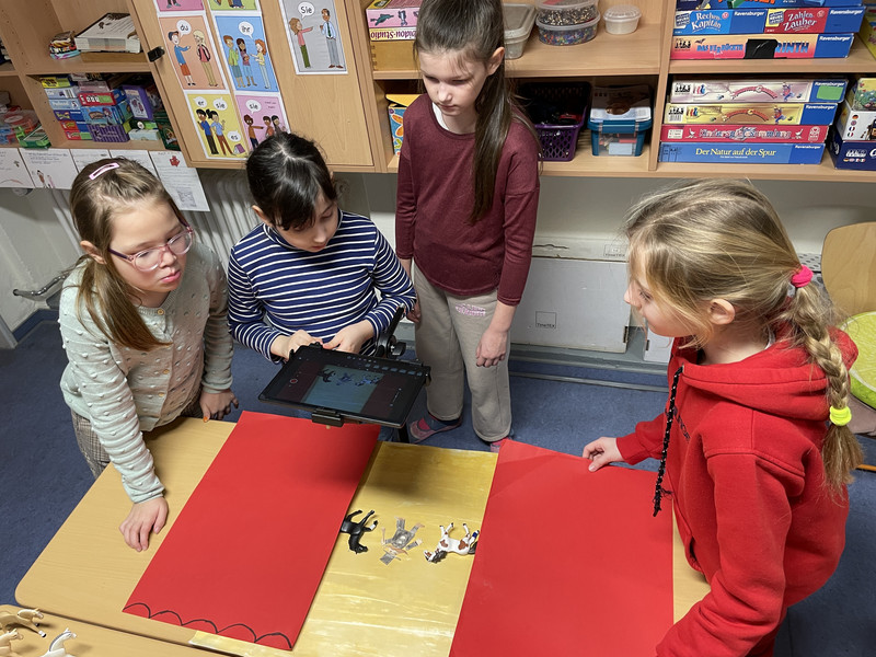 Im Rahmen des Programms #SouveränDigital des Landesamts für Schule und Bildung konnten im Schuljahr 2023/24 drei Medienbildungsprojekte mit externen Anbietern an unserer Schule durchgeführt werden. In der Klasse 3b war die Trickfilmschule Fantasia aus Dresden zu Gast. Anknüpfend an den Deutschunterricht wurde in Gruppenarbeit eine kurze Szene aus Pippi Langstrumpf als Trickfilm umgesetzt. Vor den Filmaufnahmen mussten die Szenen erstmal in einem Drehbuch geplant und die Figuren sowie die Kulisse gebaut werden. Die Szenen wurden anschließend in der Stop-Motion-Technik von den Schülern aufgenommen und im Studio der Trickfilmschule zu einem Gesamtfilm zusammengeschnitten.