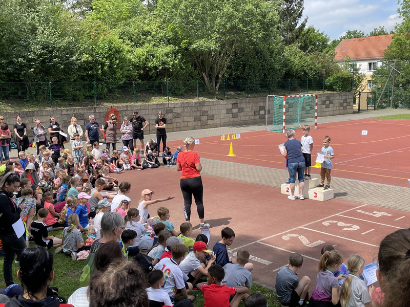 Am 4. Juni 2024 hieß es wieder lautstark "Sport frei!" auf dem Sportplatz in Zauckerode. Nach einer gemeinsamen Aufwärmung galt es in den drei leichtathletischen Disziplinen 50m-Sprint, Ballweitwurf und Weitsprung sein sportliches Können zu zeigen. Die besten Leistungen wurden zu den Siegerehrungen gewürdigt. Den traditionellen Abschluss bildete wieder einmal der Umkehrstaffelwettbewerb für alle Klassen. Die Sieger durften sich mit einem Eis abkühlen.