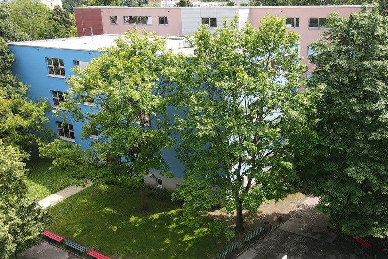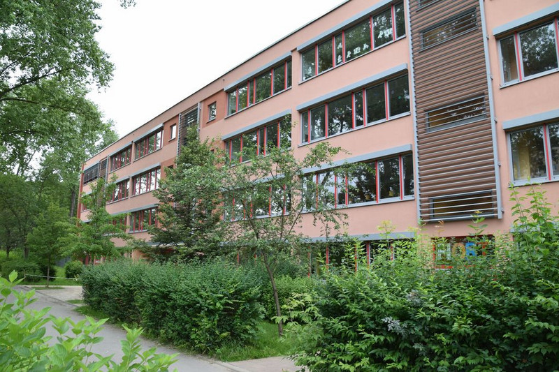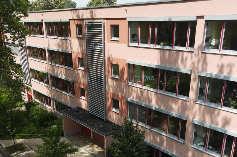 Der Gebäudekomplex von Schulhof-Seite aus fotografiert.
