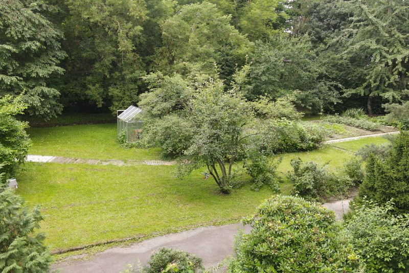Ausblick aus einem Fester auf das Nebengebäude.