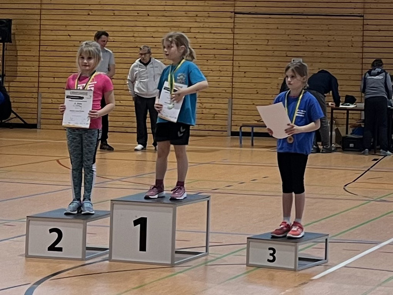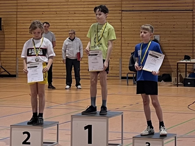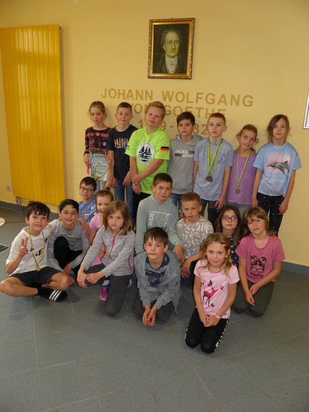 Auch in diesem Jahr nahm unsere Schule wieder an der Hallenmeisterschaft in Olbernhau teil. 20 ehrgeizige Schülerinnen und Schüler der Jahrgangsstufen eins bis vier bewiesen dabei in den Disziplinen Dreierhopp, Medizinballschocken, Sprint und Rundenlauf ihr Können. Nach diesem anstrengenden Wettkampftag konnten alle Kinder mit neuen persönlichen Bestleistungen nach Hause gehen. Wir freuten uns über insgesamt sieben Medaillen!