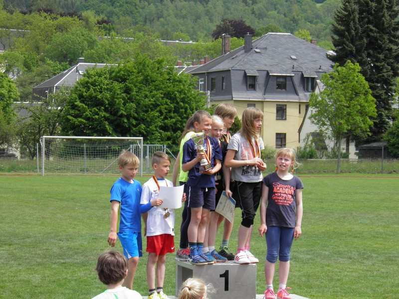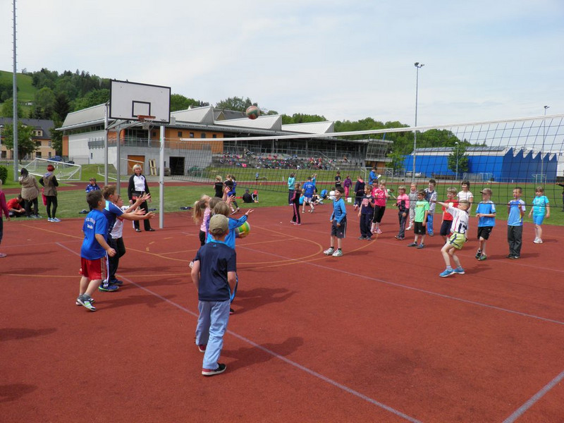 Vorfeld jeder entschieden hatte. Danach versuchten sich alle im leichtathletischen Dreikampf (Sprint, Sprung, Wurf). Als Höhepunkt fanden schließlich die Staffelläufe über 8x50m statt. Währenddessen im Rechenbüro emsig die Siegerehrung vorbereitet wurde, konnten sich alle Kinder mit den Geräten der Pausenspielkiste beschäftigen oder sich beim Werfen und Fangen des Balls über das Netz ausprobieren. Ein herzliches Dankeschön gilt den Helfern der Klasse 8 der Oberschule Olbernhau, den Praktikantinnen der Klasse 10 vom Gymnasium Olbernhau und der Hauptorganisatorin Frau Weigelt. Wir behalten den Tag in schöner Erinnerung.