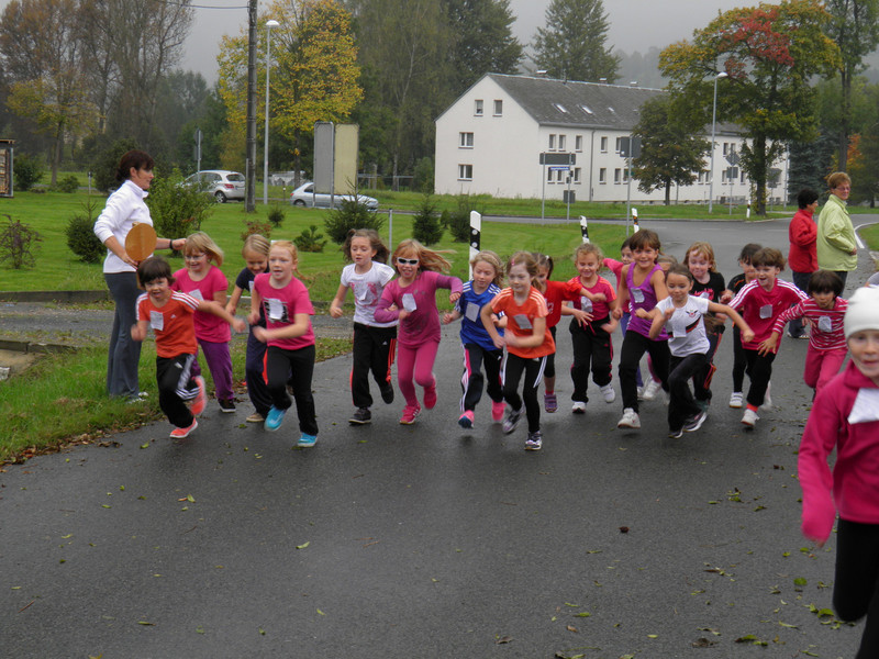 Am 01.Oktober fand unser Herbstcrosslauf statt. Wir wanderten wieder von der Schule nach Olbernhau-Grünthal. Nach der Eröffnung begannen wir mit der Erwärmung. Dann erfolgte der erste Start. Zuerst liefen die Jungen der 4. Klasse. Es folgten die Jungen der Klassen 3 bis 1. Mit den Mädchen ging es dann von der 1. Klasse aufsteigend bis zur 4. Klasse weiter. Alle Kinder kämpften tapfer und erreichten das Ziel. Bei einer Tasse Tee konnten sie anschließend wieder Kräfte sammeln. Jeder Teilnehmer erhielt eine Urkunde.