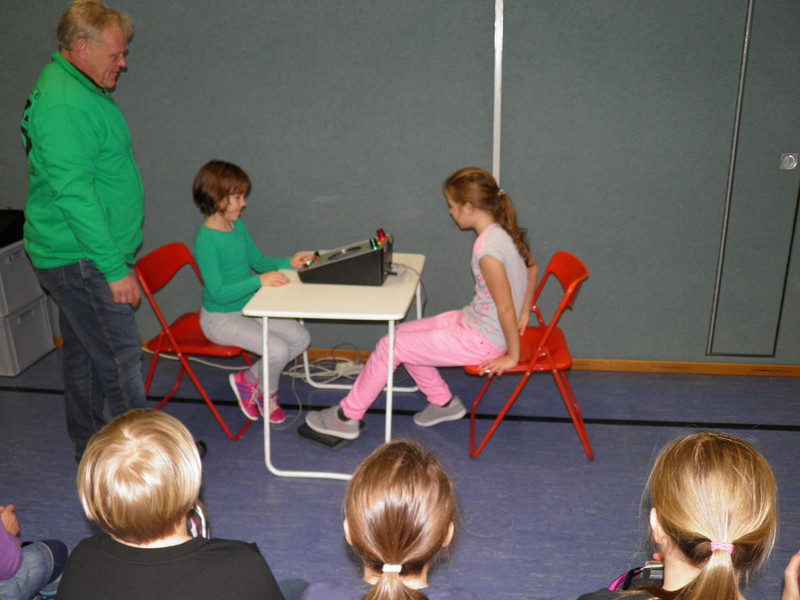 Die Kinder unserer Schule probierten in ca. 3 Stunden vieles aus, obwohl nicht jeder alle Märchen kannte. Dabei gab es gar keine Medaillen oder Urkunden zu gewinnen. Jeder Sieger sammelte Stempel und da Zettel nur gestört hätten, wurden Arme, Beine und sogar der Kopf bestempelt. So konnte jeder zählen, wie oft er im Märchenland Sieger war, wenn er sich nur bemühte.