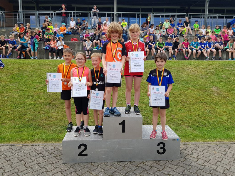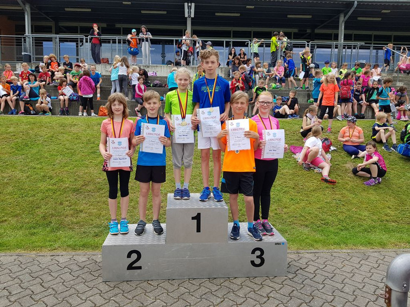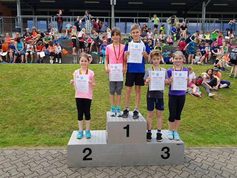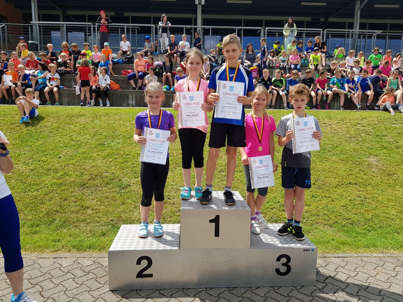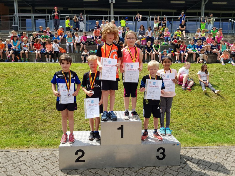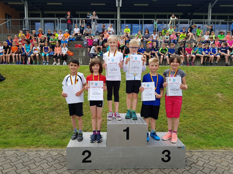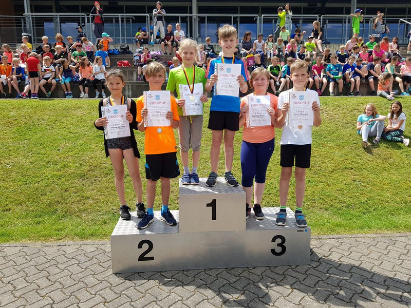 Gleich im ersten Anlauf war uns der Wettergott gnädig und wir konnten am 25.05.2018 bei herrlichstem Sonnenschein unser Leichtathletiksportfest durchführen. Wir begannen mit dem Dreikampf (Weitsprung/Ballweitwurf/50-m-Lauf). Im Anschluss galt es 600 m bzw. 800 m zu bewältigen. Den Abschluss der Wettkämpfe bildete der Staffellauf, der mittlerweile eine schöne Tradition unserer Schule geworden ist. Mit der Siegerehrung beendeten wir unser Sportfest. Die Medaillen dafür sind uns wieder vom Förderverein der Schule zu Verfügung gestellt worden.