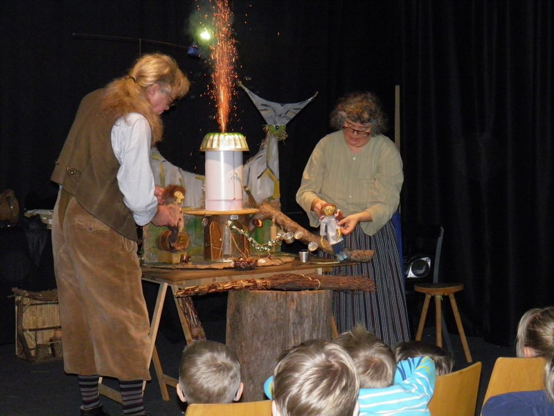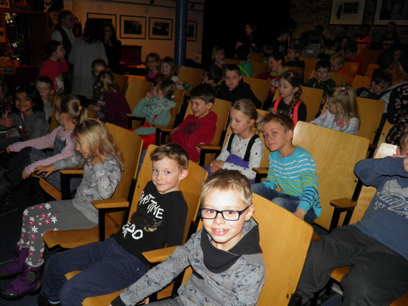 Wie immer im Dezember besuchten wir auch 2017 ein Theater mit allen Schülern. Diesmal hatten wir einen kurzen Anreiseweg, denn das kleine aber feine Theater „Variabel“ in unserer Heimatstadt Olbernhau war unser Ziel. In drei Veranstaltungen auf zwei Tage verteilt wurden die Märchen „Hänsel und Gretel“ und „Der goldene Taler“ aufgeführt. Erstaunlich dabei war zu erleben, wie die zwei Darsteller die Stücke in Szene setzten und gleichzeitig alle anderen Arbeiten die zu einem Theaterstück gehören wie Ton, Beleuchtung, Effekte und Wechsel des Bühnenbildes mit tätigten. Anschließend ergab sich die Gelegenheit, sich alles aus der Nähe anzusehen und mit den Schauspielern ins Gespräch zu kommen. Das Besondere in diesem Jahr war, dass die Kosten für dieses Vorhaben komplett von unserem Schulförderverein übernommen worden sind. Extra dafür fertigte dieser für jeden Schüler eine Eintrittskarte. Diese sollte gut aufgehoben werden, da es dafür zu unserem Schulhausgeburtstagsfest am 16.06.2018 noch eine kostenlose Zuckerwatte gibt. Für diese Aktivitäten sagen wir dem Förderverein - HERZLICHEN DANK.