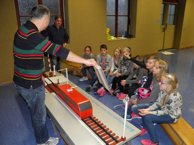 stand am 20. und 21. 11. 2017 auf dem Stundenplan unserer Grundschule. Vertreter der Polizei und der Verkehrswacht Marienberg bauten an diesen Tagen in unserer Turnhalle entsprechende Stationen auf. Anschließend konnte jeder Schüler über 2 Stunden hinweg mit seiner jeweiligen Gruppe alle Stationen besuchen. Dabei spielten Themen wie das richtige Tragen des Fahrradhelmes, das Verhalten an Bahnübergängen, Reaktionsschnelligkeit, Ausrüstungsgegenstände der Polizei, das verkehrssichere Fahrrad, sehen und gesehen werden im Dunkeln sowie das Bewältigen eines Fahrradparcours eine Rolle. Die Kollegen unserer Schule schätzten die Veranstaltung als sehr gelungen ein. Unterstützt sie doch letztendlich das laut Lehrplan zu vermittelnde Wissen über das Verhalten im Straßenverkehr auf praktische Art und Weise. Den Veranstaltern / Organisatoren (Verkehrswacht, Polizei) sagen wir dafür HERZLICHEN DANK.