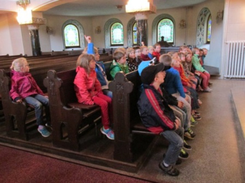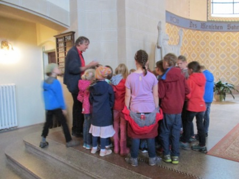 Klasse 1 on tour im Stadtteil Harthau zum fächerverbindenden Unterricht "Harthau früher und heute"