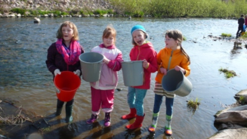 Schüler der Klasse 3a schicken Lachse auf große Reise