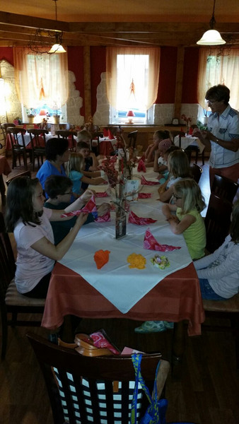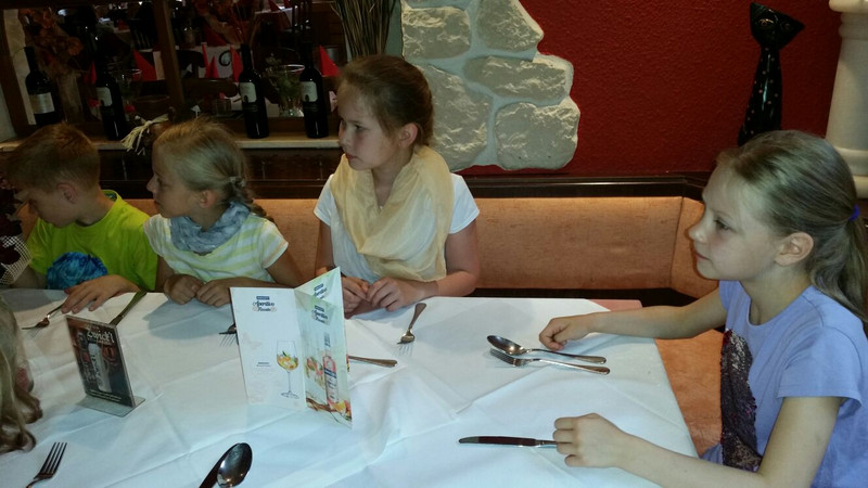 Zum Thema: "Benimm ist in" besuchten die Klassen 2a und 2b die Gaststätte "la rustica". Frau Bischoff und Frau Piti vermittelten viel Interessantes und Wissenswertes über Tischmanieren.