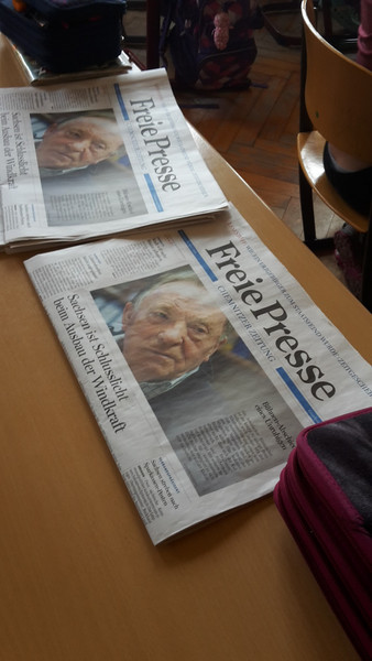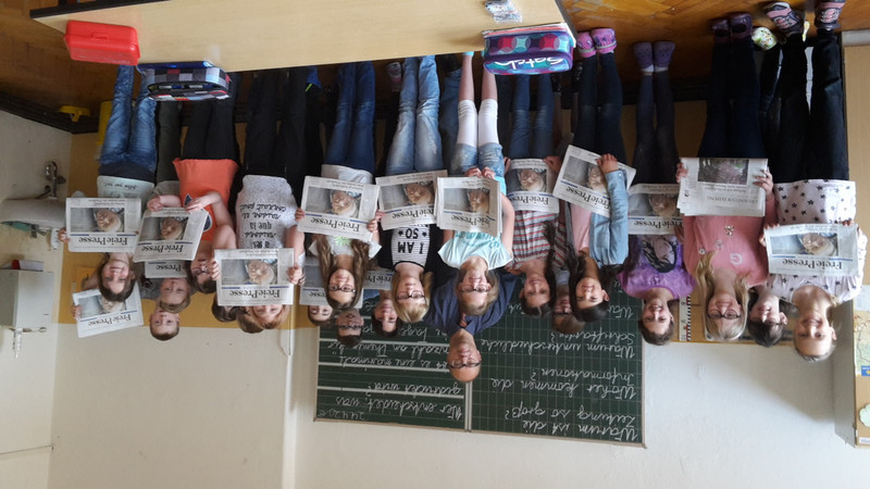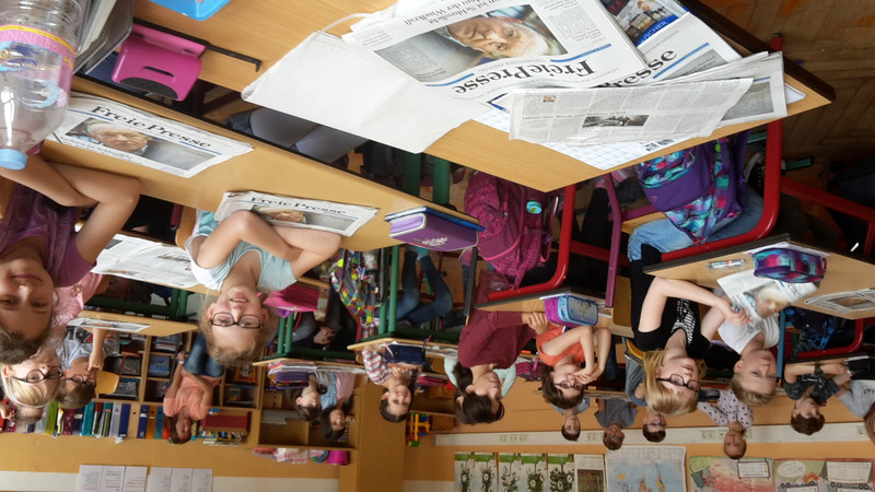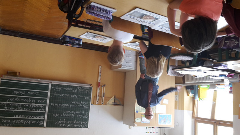 Die Klasse 4b beschäftigte sich im April mit dem Aufbau einer Tageszeitung und hatte Herrn Bartel von der "Freien Presse" zu Gast, der viele Fragen beantwortete.